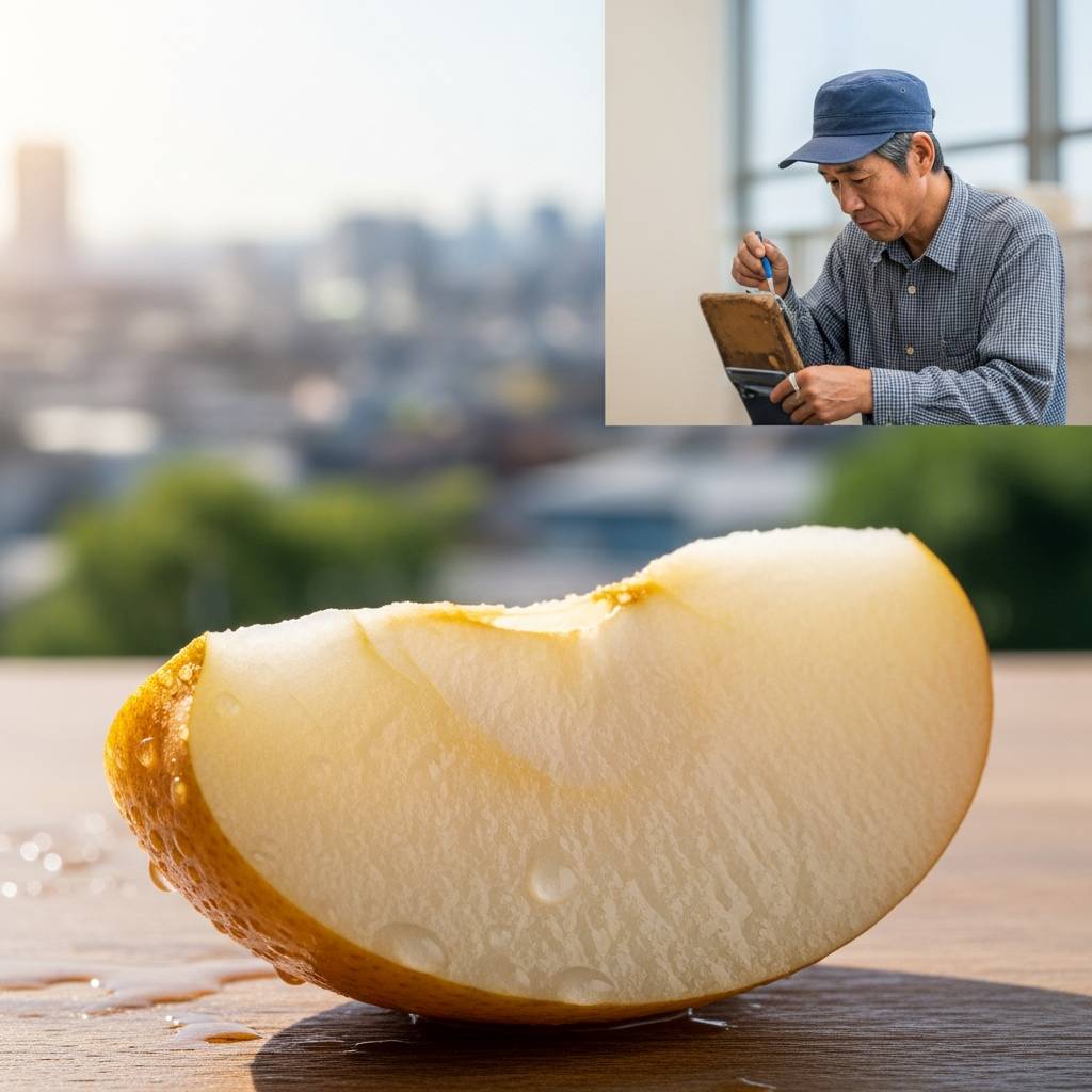ナイフを入れた瞬間、まな板に滴り落ちるほどの水分量にまず目を奪われました。これが「木の上でギリギリまで熟成させた」梨の実力なのかと驚かされます。一口頬張ると、期待通りの「シャリッ」という小気味よい音が響き、その直後に濃厚な甘みと香りが口いっぱいに広がりました。