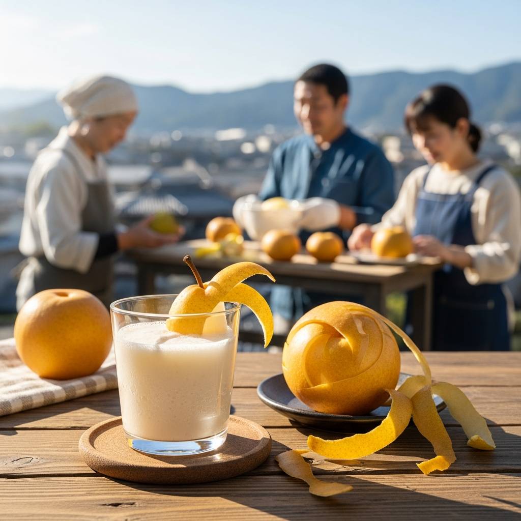 梨の皮には、果肉以上にポリフェノールやアスパラギン酸といった栄養素が含まれています。皮特有のシャリシャリとした食感の元である「石細胞」は、腸を刺激して便通を整える効果も期待されており、スムージーにすることで喉越しの良い適度なアクセントに変わります。作り方はとても簡単です。よく洗った小田原梨を皮付きのまま一口大にカットし、氷、少量の水、そしてハチミツと一緒にミキサーにかけるだけ。さらに風味を引き立てるなら、同じく小田原の名産であるレモンを数滴絞ってみてください。柑橘の爽やかな香りが梨の甘みを引き締め、皮の苦味を全く感じさせない極上のデザートドリンクが完成します。